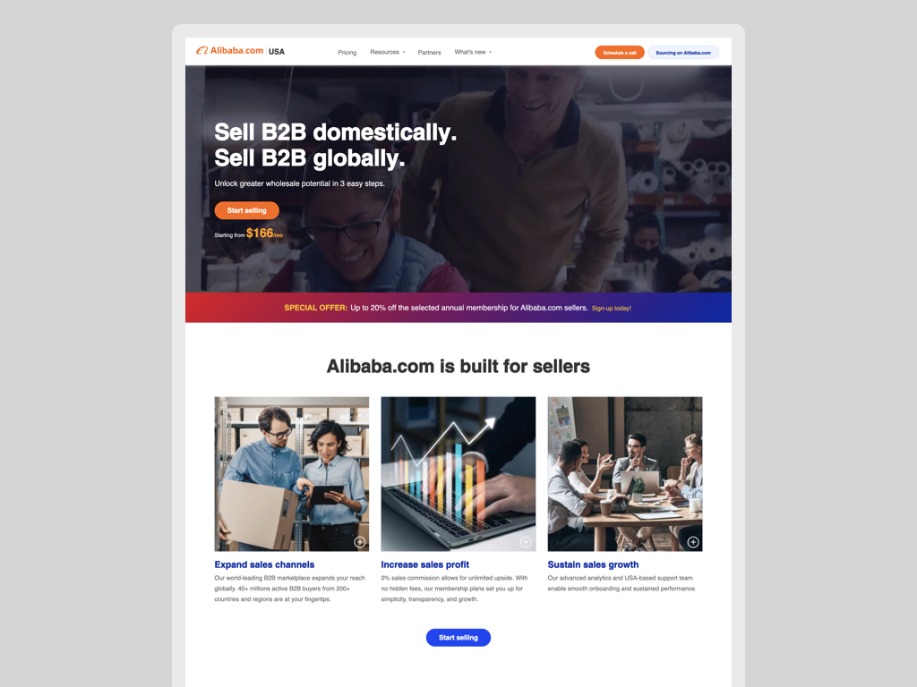1. Trust and credibility: US sellers often perceived Alibaba.com as a platform for overseas suppliers only. Establishing credibility and relevance for US sellers was critical to engagement and conversion.